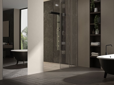 Дверь межкомнатная 6311 БАН Зеркало. Цвет Бук антрацит. Материал Массив бука эмаль. Коллекция Toscana Grigliato. Картинка.